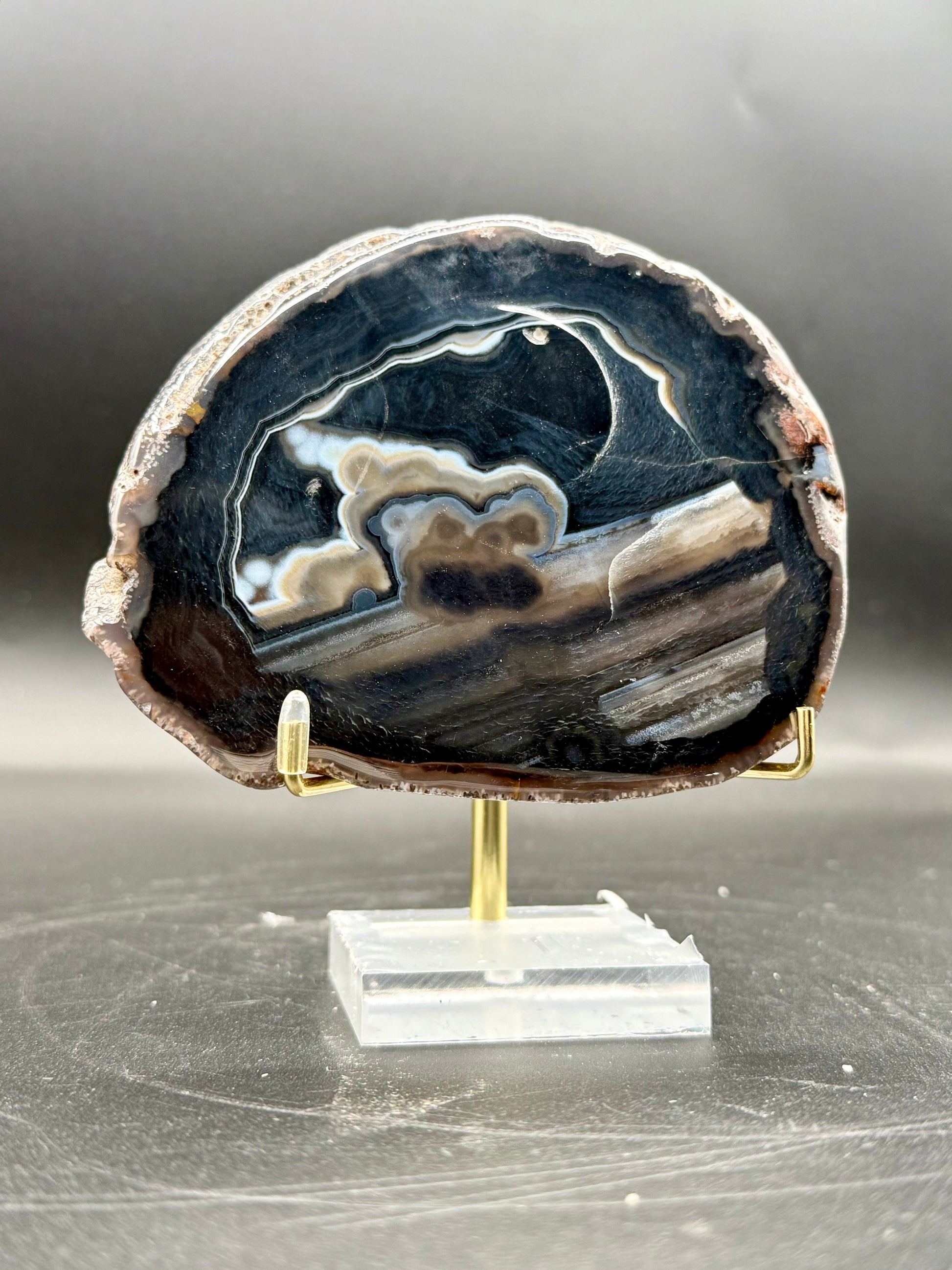 Black Sardonyx Slice with Open Druzy